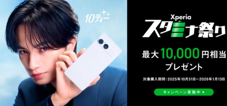 「Xperia スタミナ祭り」の購入期間は、 2025年10月31日(金)~ 2026年1月13日(火)までとなっています。