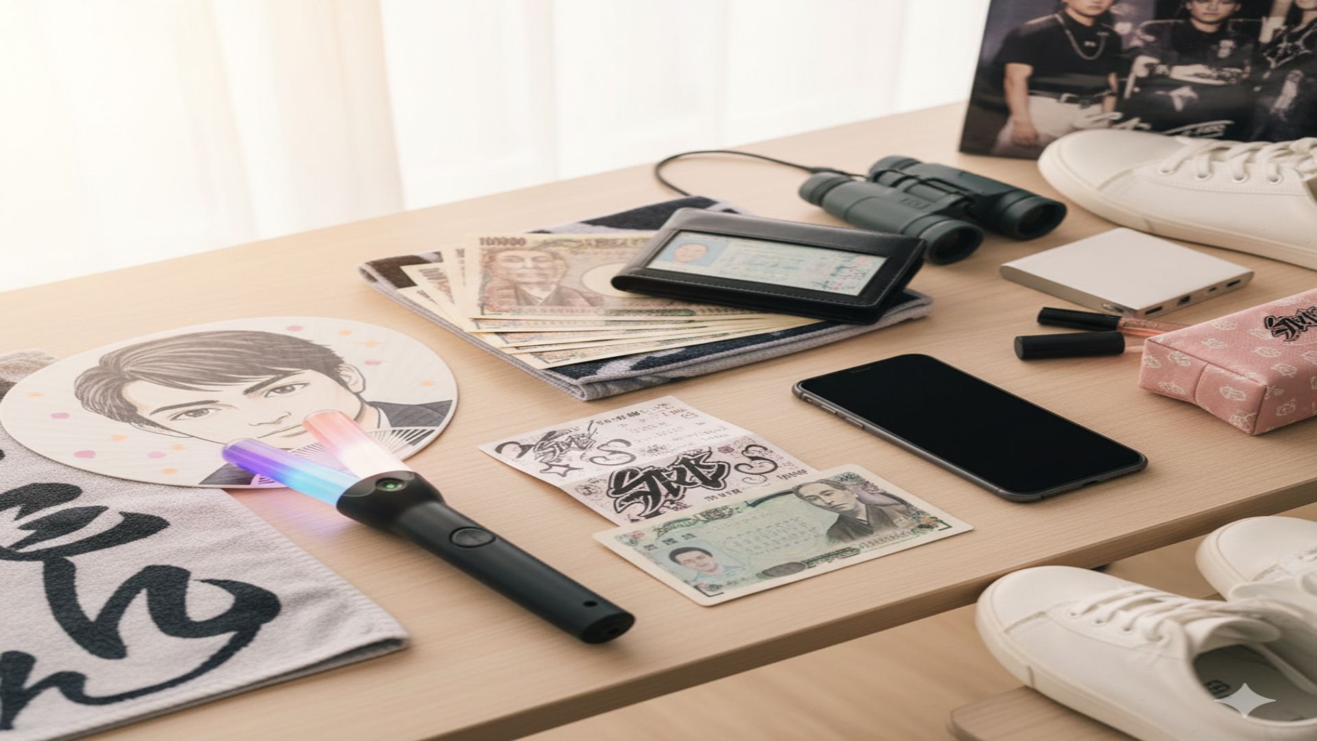 また、 推しの表情をはっきりと見るための「双眼鏡」や、 スマートフォンの充電切れを防ぐ「モバイルバッテリー」もあると非常に心強いでしょう。