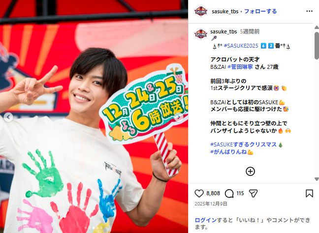 — SASUKE【TBS公式】 (@sasuke_tbs) December 9, 2025