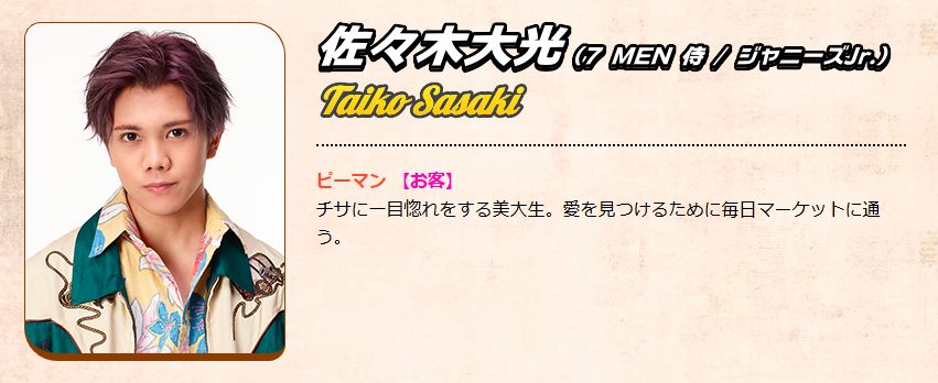 一方、 佐々木大光さんが演じたピーマンは、 マーケットの客であり、 レジ係のチサに恋心を抱く情熱的な美大生という役どころでした。